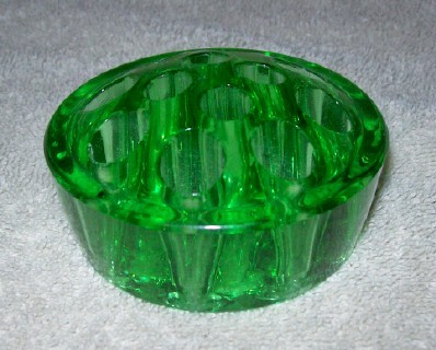 Title (ebay affiliate link): GREEN DEPRESSION GLASS FLOWER FROG PLANT HOLDER 12 HOLE