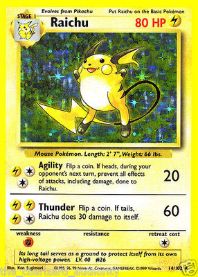 Title (ebay affiliate link): Pokemon Card RAICHU 14/102 Base Set HOLO Rare EXCELLENT