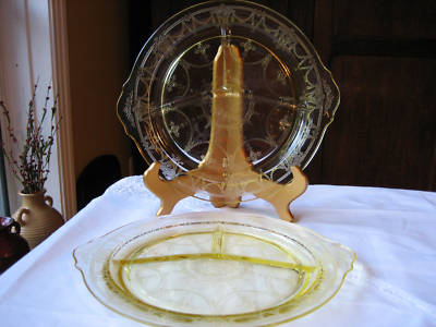 Title (ebay affiliate link): HOCKING CAMEO BALLERINA YELLOW GRILL PLATES W/TABS-TWO