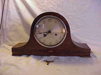 Title (ebay affiliate link): ANTIQUE ENGLISH TAMBOUR ART DECO MANTLE CLOCK WOOD CASE ENGLAND KEY WIND 8 DAY