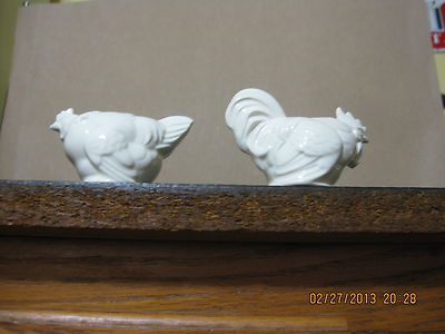 Rooster & Hen S & P White Salt & Pepper Shakers Shaker Set Both Stamped On Bott
