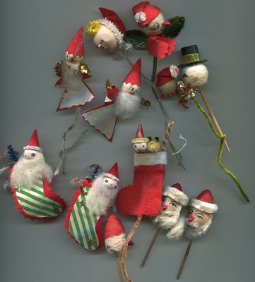 Title (ebay affiliate link): 12 VINTAGE 1950s CHRISTMAS SANTA+SNOWMAN PICKS-CORSAGE TIES