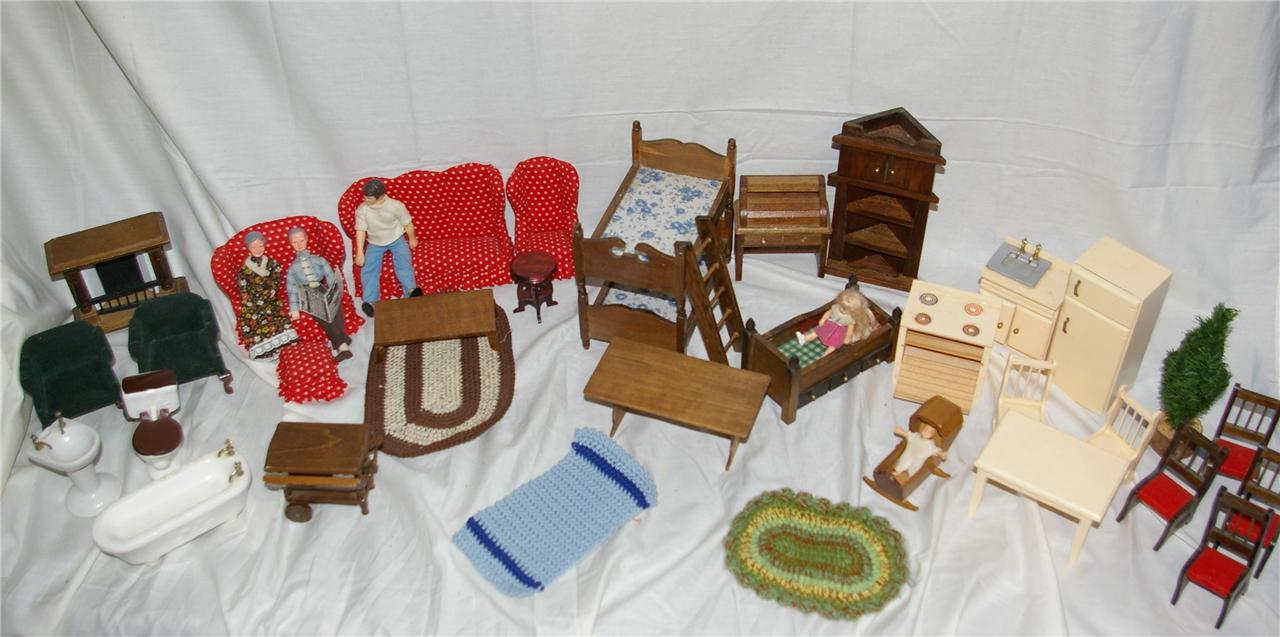 Title (ebay affiliate link): Antique Vintage Dollhouse furniture and people 40 pcs!!