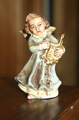 Title (ebay affiliate link): Early 1930s Miniature Angel playing Harp. Plaster Molded Figure. Germany.
