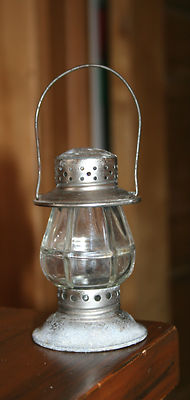 Early 1900s Metal & Glass Railroad Lantern. Candy Container. Ornament for Tree