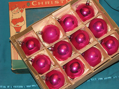 VINTAGE SHABBY PINK FANTASIA GLASS ORNAMENTS