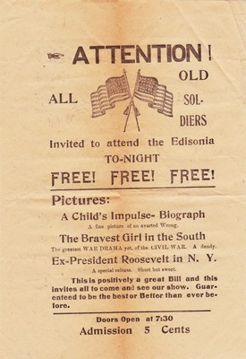 Edisonia Broadside Silent Movies Pres Roosevelt Mary Pickford, D. W. Griffith B