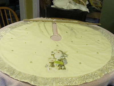 Title (ebay affiliate link): Christmas tree skirt in cream and gold with pearl beads