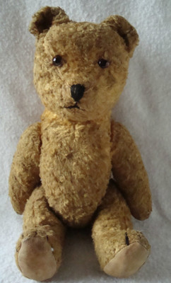 Vintage old Dean's Rag Book? plush teddy bear, wood-wool, glass eyes, 1930s 14"