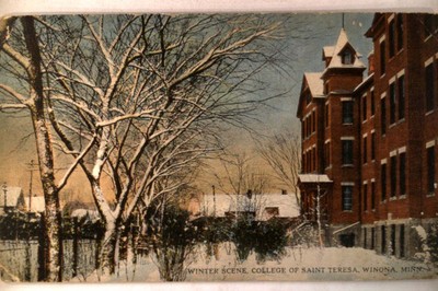 1918 WINTER AT SAINT TERESA COLLEGE Winona Minnesota MN postcard y4767