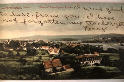 1906 BIRDSEYE AERIAL VIEW OF TOWN Farmington Maine ME postcard y2588