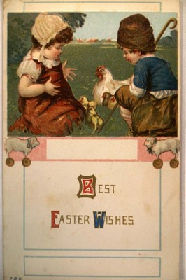 Title (ebay affiliate link): pre-1920 VINTAGE PULL-TOY DECORATION plus KIDS & CHICKS - Easter postcard y4489