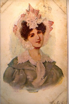 Title (ebay affiliate link): 1907 PRETTY WOMAN WITH BIG PINK HAT Art Nouveau Beautiful Postcard y0190