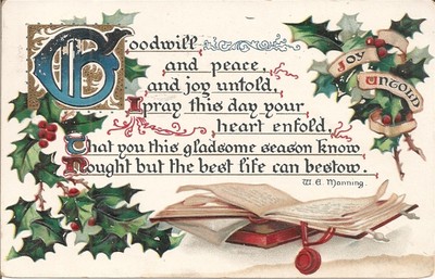 Title (ebay affiliate link): Old Tuck Christmas Postcard Of Pretty Holly & Book-Joy Untold Quote by Manning