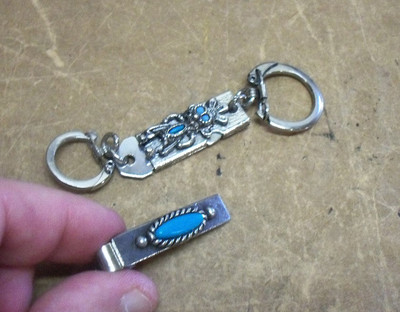 Title (ebay affiliate link): Turquoise Tie Clasp + Keychain w Silvertone Kokopelli Man Vintage M1