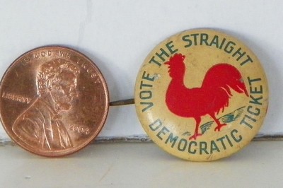 Title (ebay affiliate link): Vote The Straight Democratic Ticket Pin Back Red Chicken