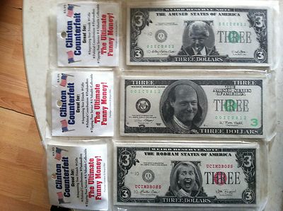 Title (ebay affiliate link): 3 Unopened Packs of Clinton Counterfeit-The Ultimate Funny Money!!!!