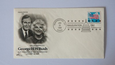 Title (ebay affiliate link): 1989 Inauguration Day George Bush Barbara FDC First Day Issue Cover 1989