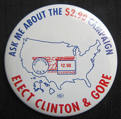 Title (ebay affiliate link): Vintage 1992 "Ask Me About the $2.90 Campaign Elect Clinton & Gore" Button
