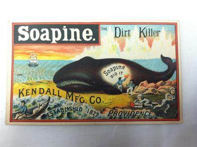 RARE VINTAGE 1880S SOAPINE TRADE CARD MAN CLEANING WHALE