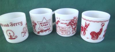 Title (ebay affiliate link): SET ANCHOR HOCKING MILK GLASS DAVEY CROCKETT MUG CUPS WESTERN CIRCUS WYATT EARP