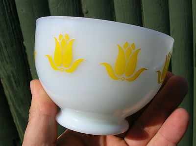 Vintage Fire King Milk Glass Yellow Tulip Cereal Bowl Sealtest Cottage Cheese