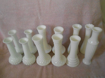 Title (ebay affiliate link): Lot of 12 Milk Glass Bud Vases Great for Wedding Decor Showers Lot 4 of 4