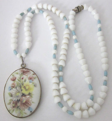 Title (ebay affiliate link): Vintage Porcelain Cabochon Pendant Milk Glass Bead Necklace