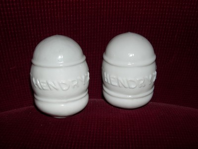 Antique HENDRYX Brass Bird Cage Embossed Milk Glass Feeders pair