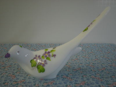 Title (ebay affiliate link): Fenton Milkglass "Violets In The Snow" Handpainted Happiness Bird Figurine.
