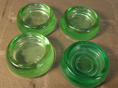 ANTQ VNTG GREEN GLASS SET OF 4 FURNATURE COASTERS NO RESERVE!!