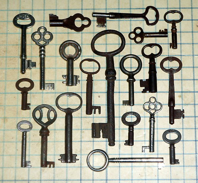 Title (ebay affiliate link): 20 Antique Vtg old skeleton key lot furniture cabinet barrel padlock lock craft