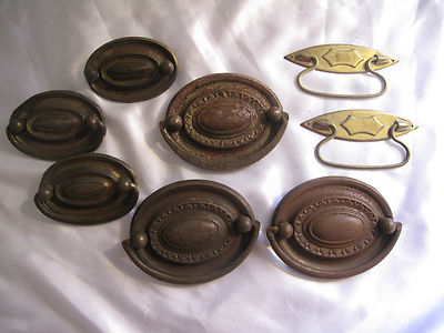 vtg antique lot 8 hardware brass dresser furniture drawer pulls knob parts