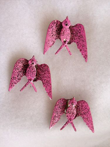 Title (ebay affiliate link): Vintage! 3 Tiny Pink TIN Bird Clips, Hair or Lapel. Scissortail Swallows. Japan