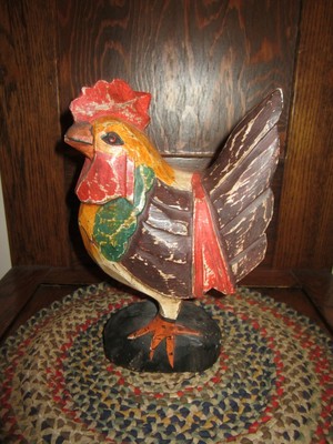 PRIMITIVE FOLK ART WOOD CARVED ROOSTER