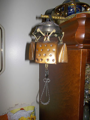 ANTIQUE TRAMP ART COW BELL WIND CHIMES