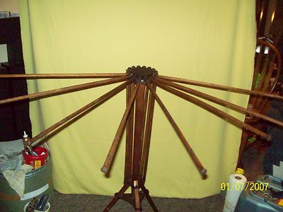 Title (ebay affiliate link): ANTIQUE VINTGAGE WOODEN CLOTHES DRYER UMBRELLA BARS DRYER 1904