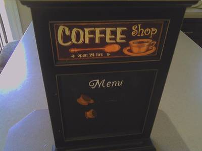 COFFEE DECOR MENU CHALK BOARD PICTURE WITH CUP MAGNETS.