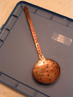 Title (ebay affiliate link): vintage OLD EARLY COPPER STRAINER SPOON UTENSIL FOLK ART skimmer ladle moonshin