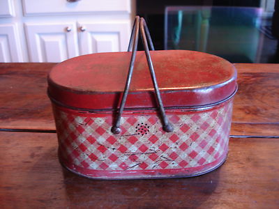 Title (ebay affiliate link): VINTAGE RED AND WHITE CHECK TIN LUNCH PAIL BUCKET RUSTIC FARMHOUSE CHIC CUTE!