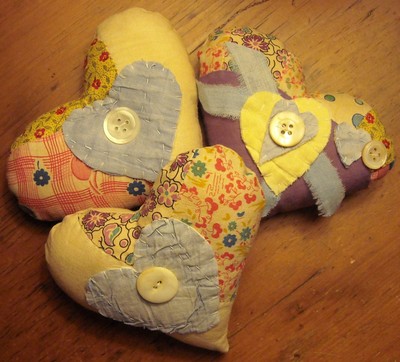 Title (ebay affiliate link): Trio of Primitive Heart Pillow Bowl Fillers From Vintage Quilts