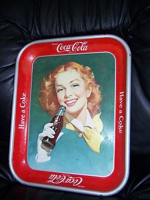 Title (ebay affiliate link): Original 1950's Coca Cola "Have a Coke" metal serving tray. Red hair beauty.
