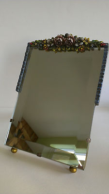 Title (ebay affiliate link): Original 1930s Pretty Barbola Flower Mirror Deep Beveled Edge Easel Stand Deco