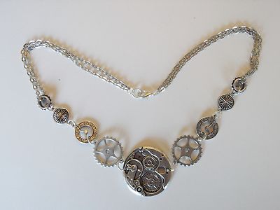Title (ebay affiliate link): ANTIQUE SILVER STEAMPUNK CLOCK GEAR NCKLACE- Made in Australia