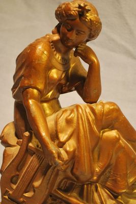 Title (ebay affiliate link): Antique Gilt Metal Victorian Lady w Lyre Clock Topper Statue Ansonia Set Thomas?