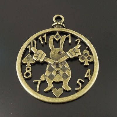 Title (ebay affiliate link): **10pcs Antique Style Bronze Tone Alloy Rabbit Poker Clock Pendant Charms 41mm