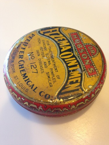 Title (ebay affiliate link): 1920's Vintage Metal Tin Medical Eczema Ointment. Dr Hobson's