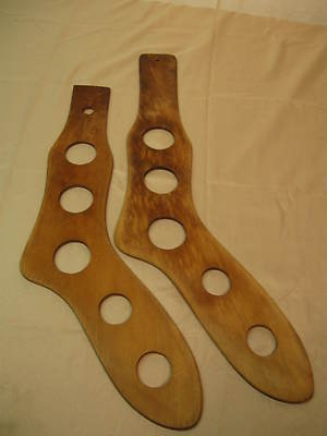 PAIR OF ANTIQUE WOODEN SOCK FORMS STRETCHER DRYER WOOLEN WOOL
