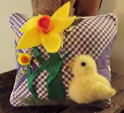 Title (ebay affiliate link): Primitive Antique Quilt Sculpted Wool Bantam Chick And Daffodil Pillow