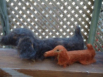 PRIMITIVE WEINER LONG HAIR DACHSHUND DOG DOXIE ORNIE SHELF SITTER WOOL